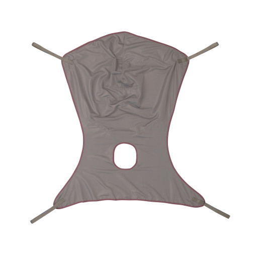 The Invacare Comfort Sling with Commode Opening is for amputees and users with chronic postural pain with delicate needs that may require a constant seated position. For transfers from a horizontal to a seated position and toileting. Use with the Invacare Reliant 450/600, Jasmine and 9805P Lifts.
