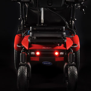 •AVIVA FX Power Wheelchair boasts a seat-to-floor height of only 16.75 inches, even with a full-sized 14-inch drive-wheel and powerful Group 24 battery. Not only can users get closer to tables, they also enjoy improved traction and stability